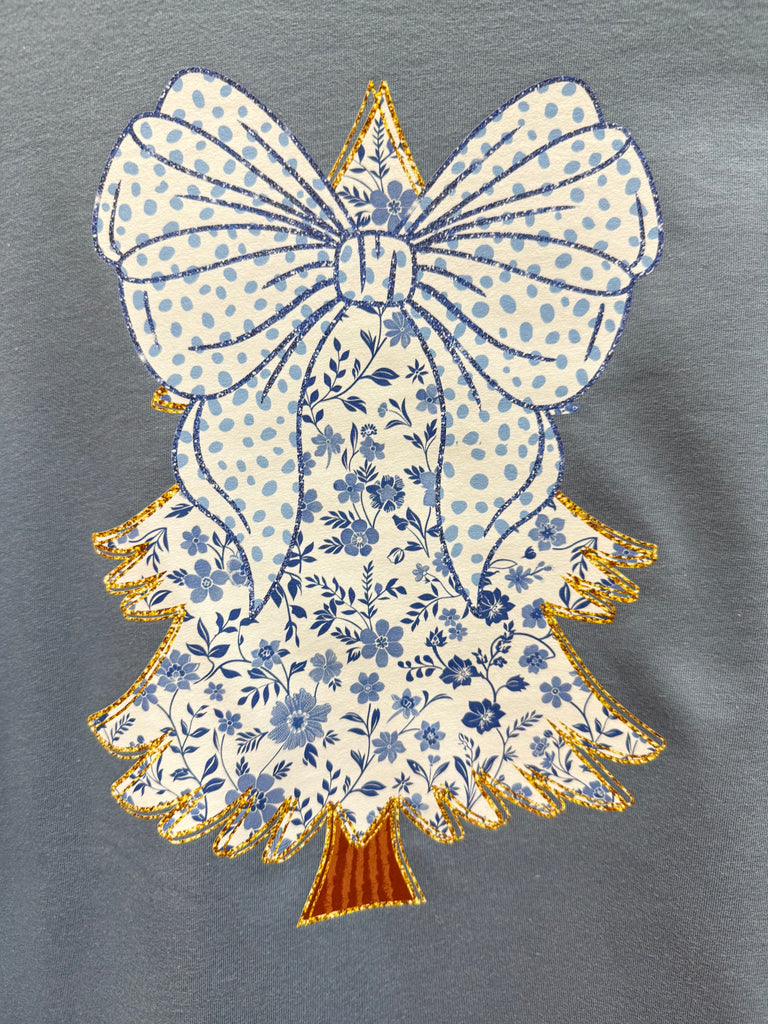 Get in the Christmas spirit with this blue floral Christmas Tee Shirt.